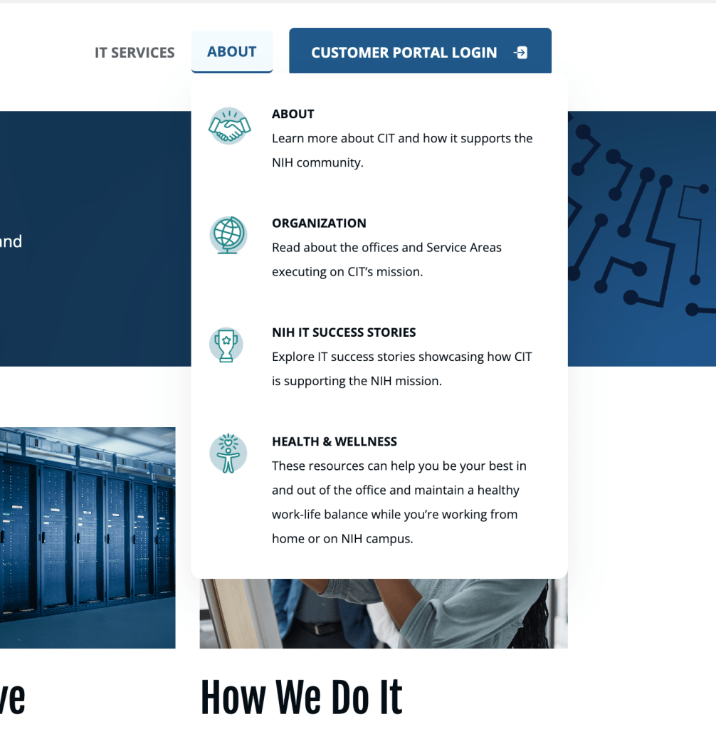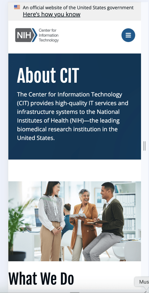 The Center for Information Technology (CIT) at NIH required a robust, modern website that would serve both the general public and NIH employees through a single, unified portal. The goal was to improve access to information and internal resources, while providing an intuitive, mobile-friendly experience for all users.